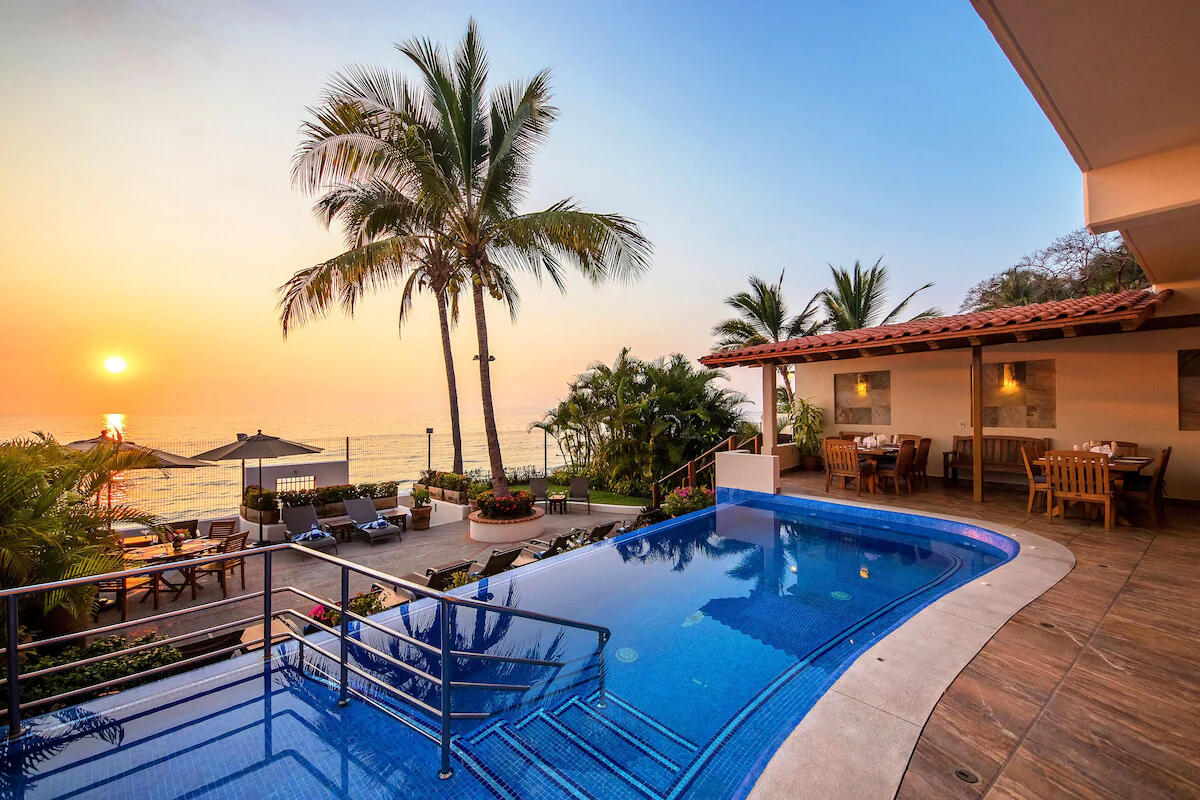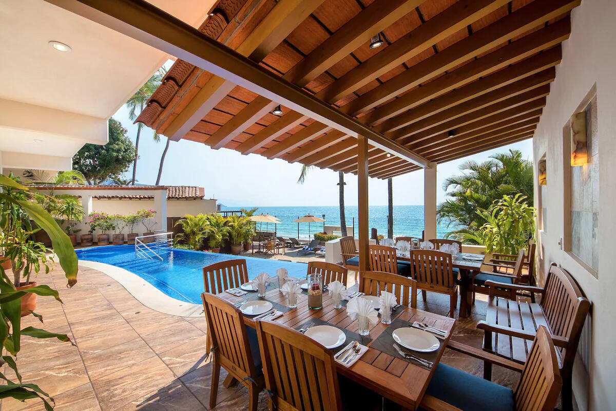 Our retreat is in the secluded, coveted neighborhood of lower Conchas Chinas, just south of Puerto Vallarta.This area is nestled within an expansive range of the Sierra Madre mountains, overlooking the peaceful Banderas Bay and its beaches.For the duration of the training, we have the entire oceanfront villa surrounded by an outdoor patio, a private pool, balconies, and terraces.Two personal chefs will be preparing culinary marvels made to order.